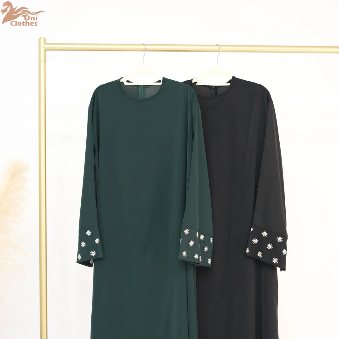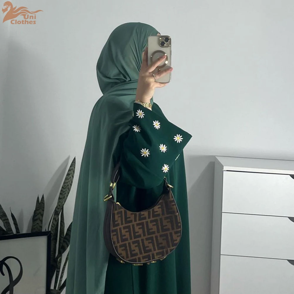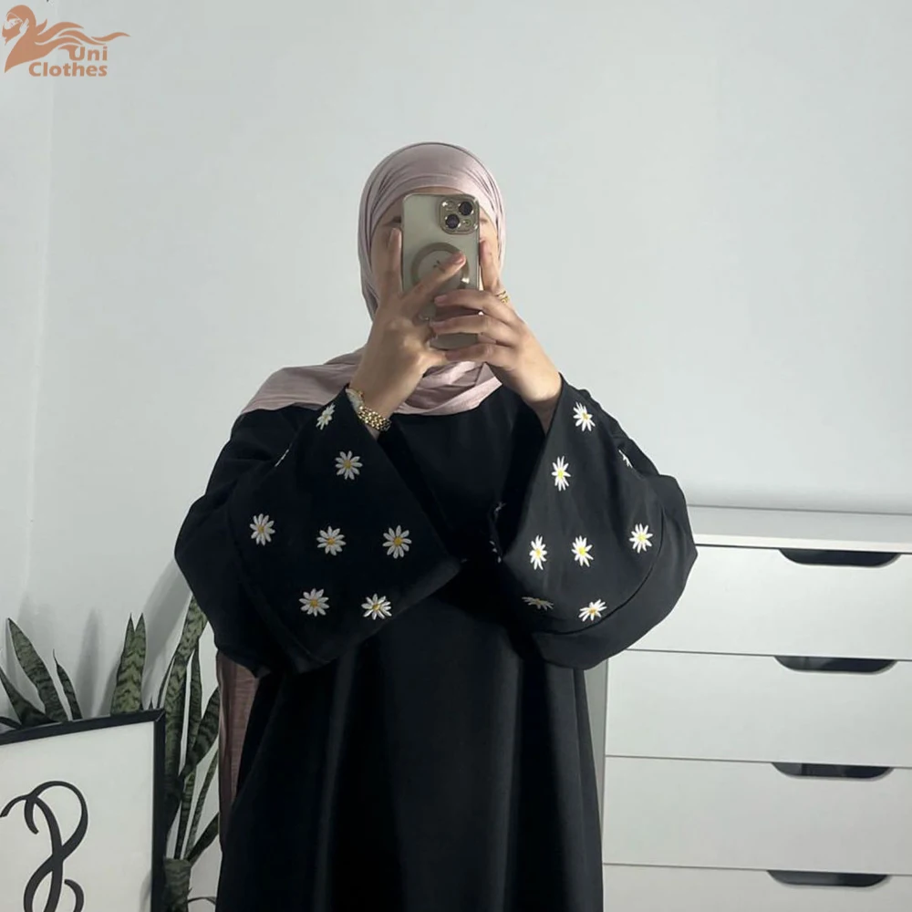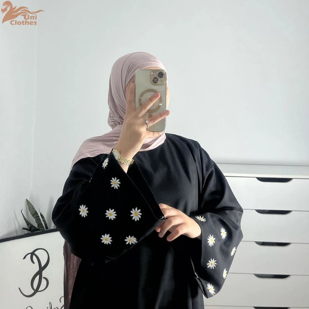 2025 Daisy Embroidery Muslim Modest Dress for Women Eid Saudi Arabia Dubai Abaya Luxury Islam Turkey Holiday Party Jalabiya Robe