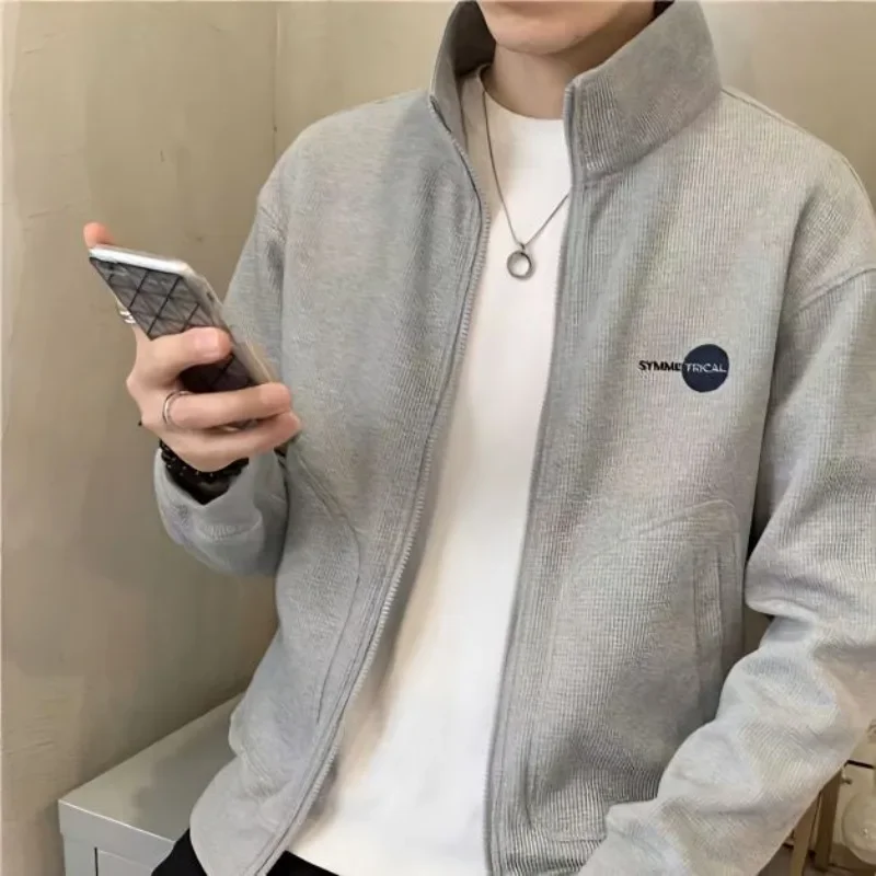 Sweatshirts for Man Pullover Top Full Zip Up Men's Clothing Embroidered Hoodieless Fleeced Black Cotton Harajuku Fashion Autumn