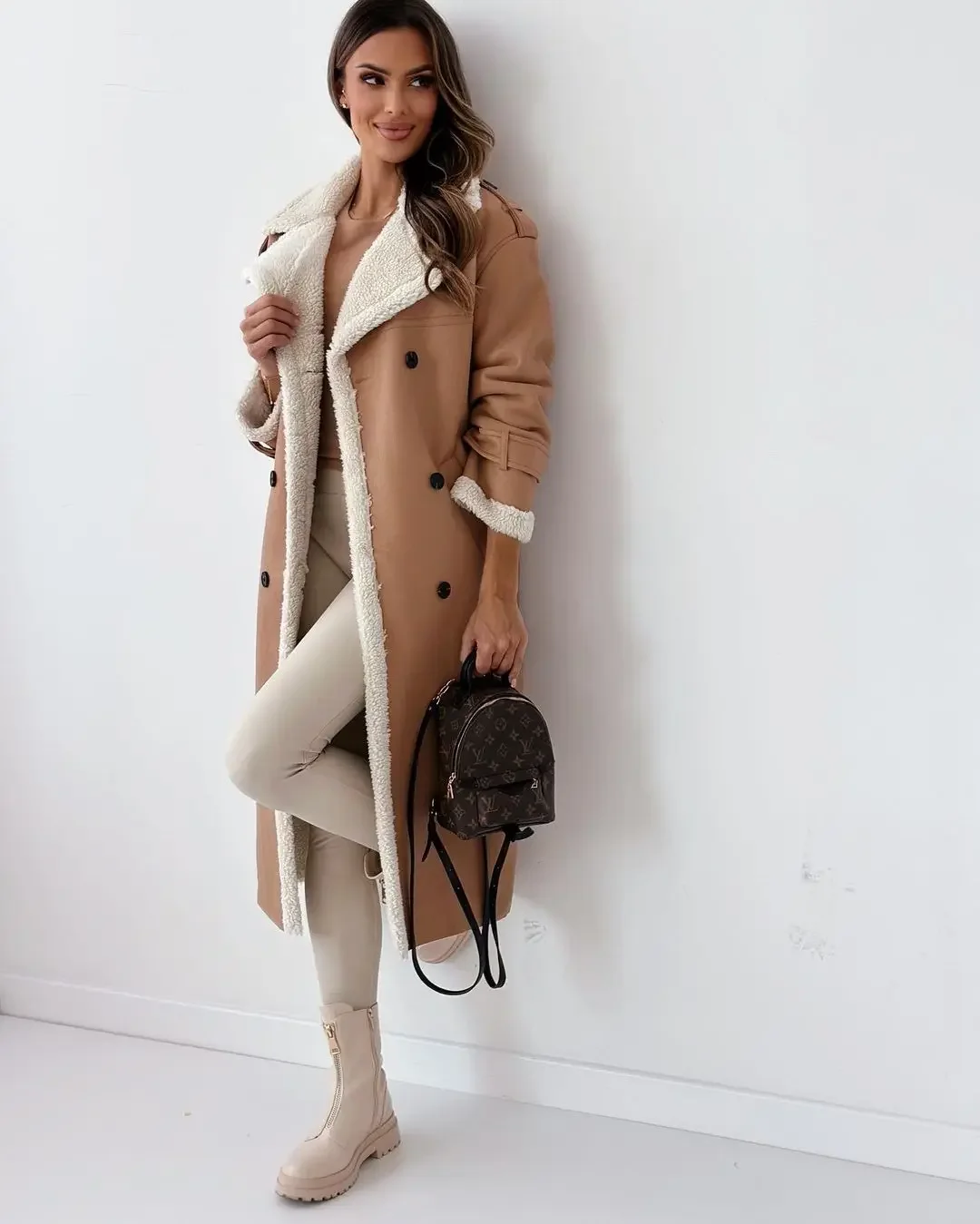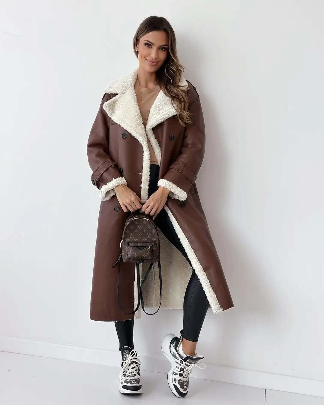 Winter New PU Coats Women Long Sleeve Solid Pocket Button Fashion Elegant Loose Straight Casual Commute Simple Female Coats